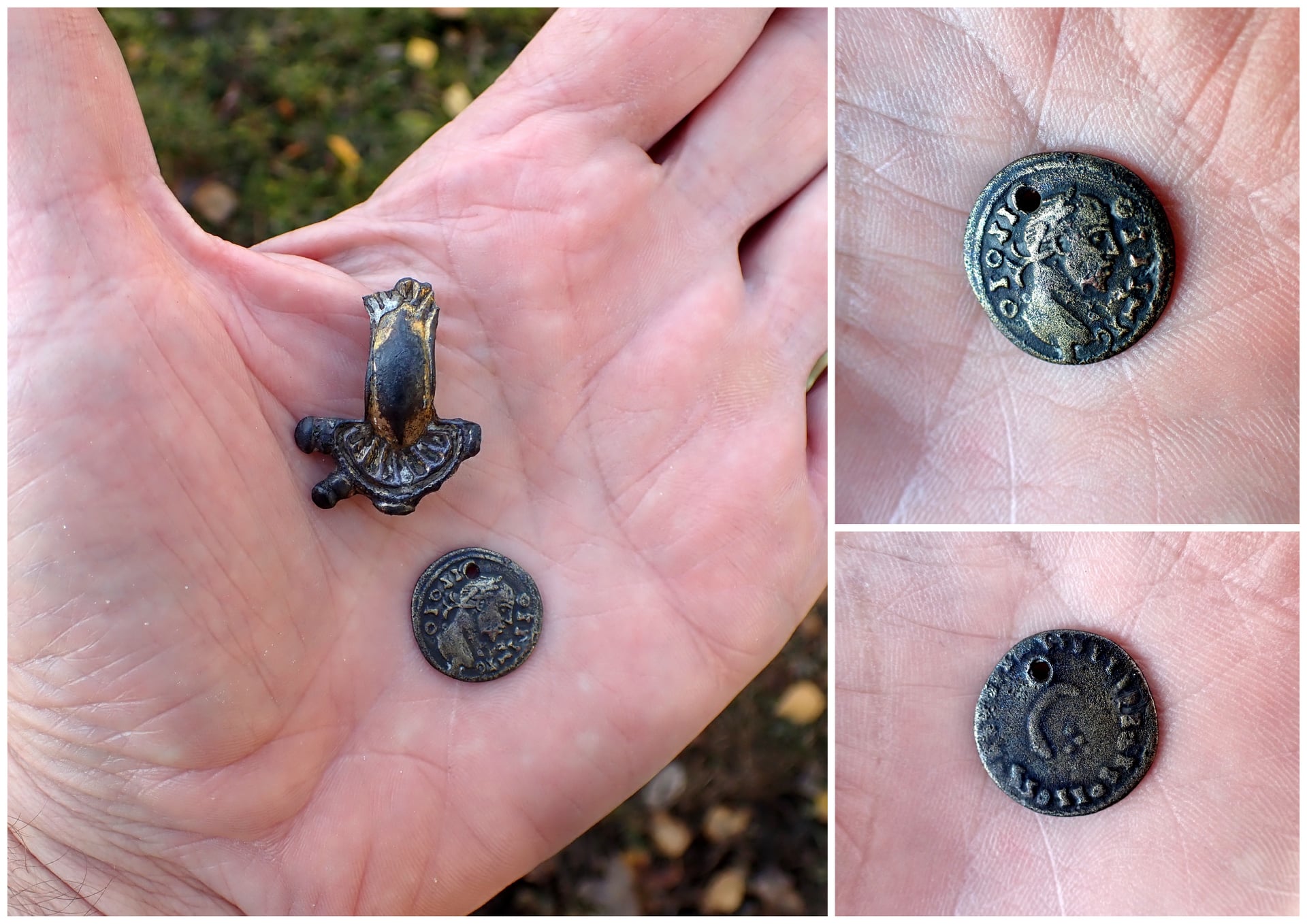 A legutóbbi fémdetektoros terepbejárásaink legérdekesebb találatai közül most két olyan leletet mutatunk be, amely a Szarvasi TSM gyűjtőterületén nem túlságosan gyakori vendég. Ezek közül az első egy Gepida kengyelfibula, amely sajnos több helyen is törött, illetve hiányos. A megviselt állapot ellenére is jól megfigyelhetők a jellegzetes díszítő motívumok és az aranyozás nyomai. Az aranyozott díszítés arra utalhat hogy a ruhakapcsoló tűként használt ékszernek minden bizonnyal rangosabb tulajdonosa lehetett. A másik tárgytípus a személyes kedvenceim egyike. A 1-4. század során az alföldet benépesítő szarmata népcsoportok egykori telepeiről időnként előkerül egy-egy érdekes, egyedi készítésű római éremutánzat.